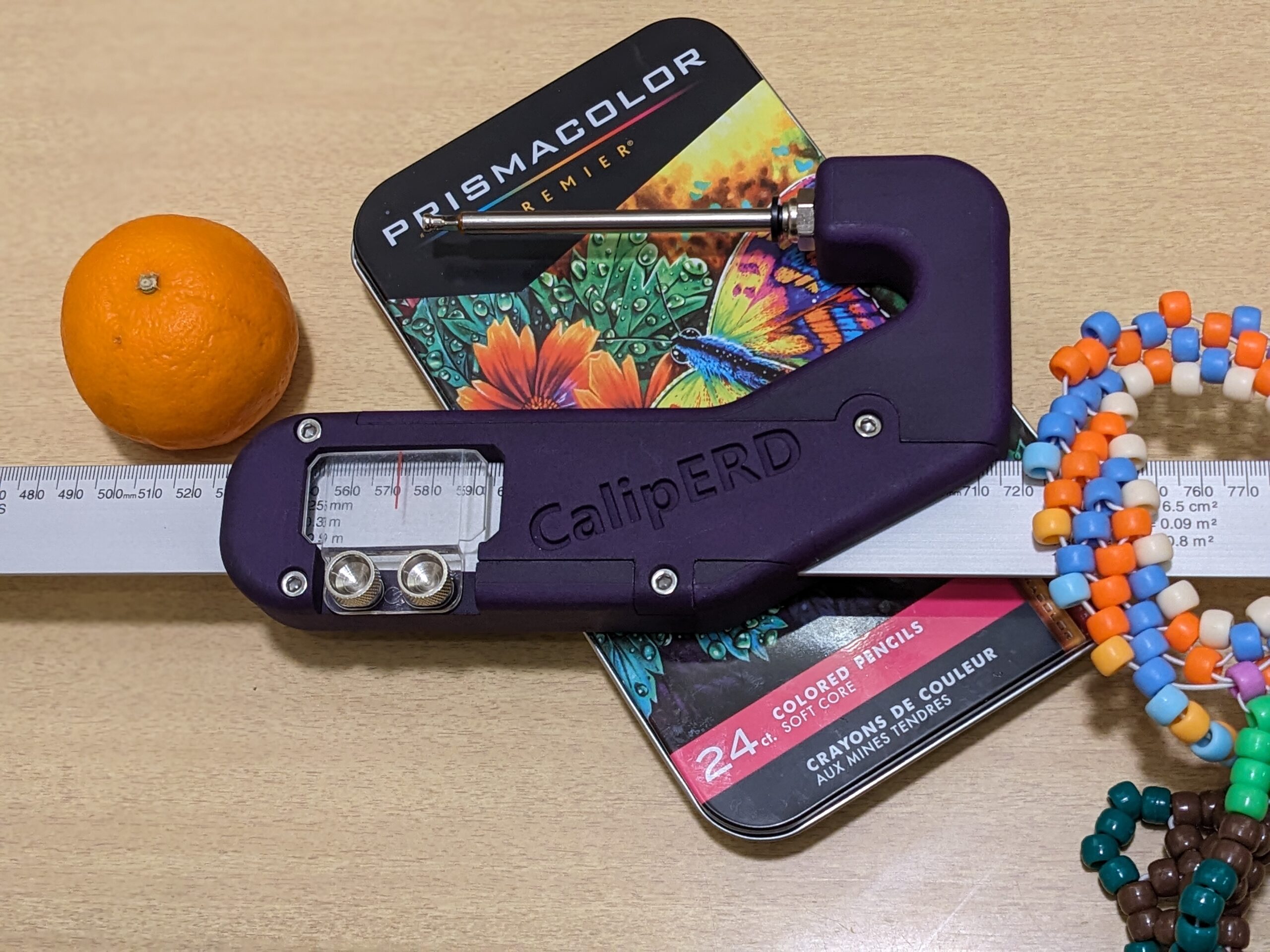 A tool to measure ERD – Effective Rim Diameter – used in spoked wheel building.